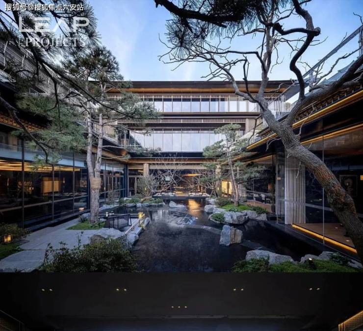 漫步于光影交织的幽静庭院,您将踏入一方充满诗意的天地。潺潺流水映照着婆娑树影,挺拔树姿为这片空间注入向上的生机,纵向延伸出无限的视觉张力。这座下沉庭院,不仅拉近了建筑与自然的情感共鸣,更使室内与景观紧密相连、和谐相融。每一扇窗户,都犹如框中的一幅生动山水画。