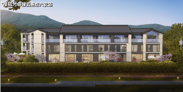 建筑风格:新中式,坡屋顶 + 大面积玻璃