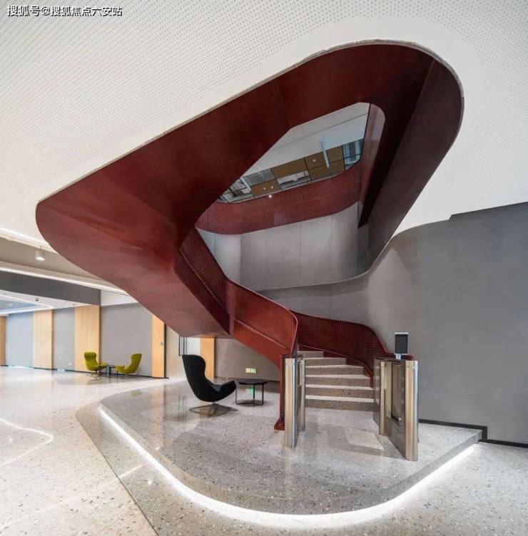 这里有着很“新加坡”的创新商务生态,一楼大堂通过大面积透明玻璃将室外景观环境引入室内,与形似新加坡擎天树(Supertrees)的艺术装置树共融共生,让冷静的办公场地变得自然、有生机;在保留原有的到访通道的功能外,大堂被设计为具有社交属性的空间,点缀其中的休憩长椅、半开放式洽谈区、阶梯式开放空间,让白领精英尽情分享社交乐趣。