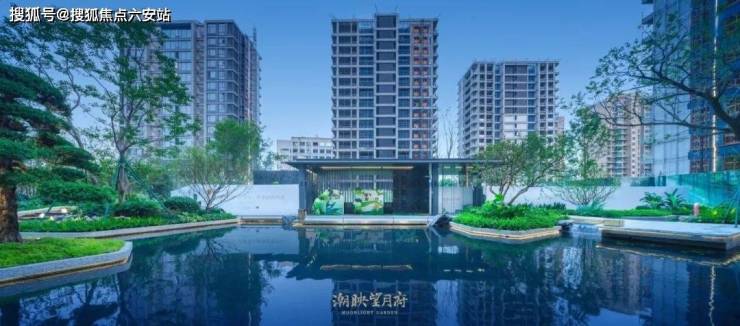 在社区整体规划方面:潮映望月府通过景观空间的差异化分配,创造出更大的核心景观空间,演绎出“大围合”的庞大中心园林尺度,并配合不规则水景、架空层的营造,塑造出极具度假质感与休闲气质的核心景观空间。
