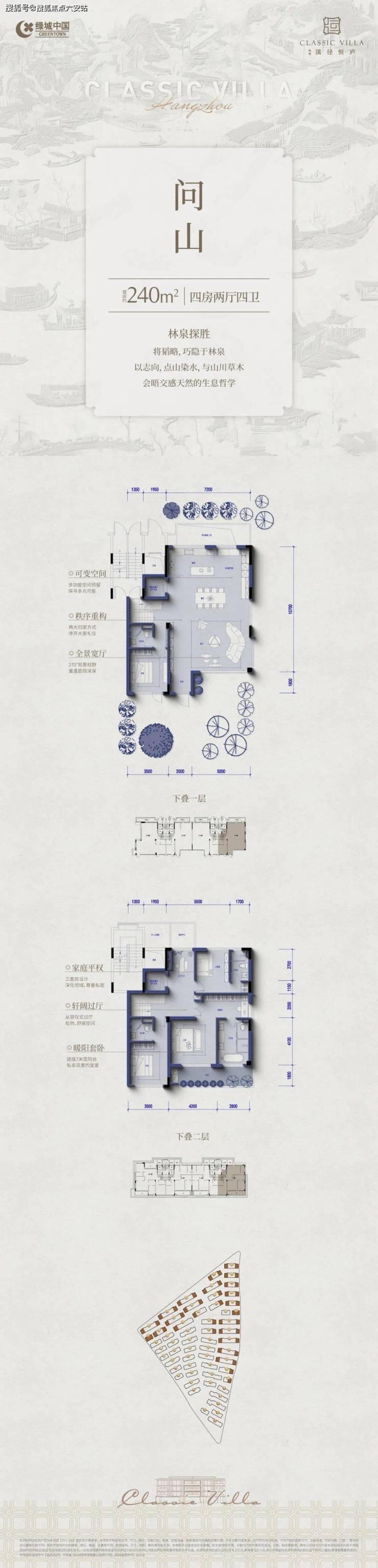绿城桃花源旁低密项目绿城溪径恒庐,规划为合院+叠墅,共计363套,(风格现代东方+创新简法),99套合院(285-396方)、264套叠墅 (249-280方)