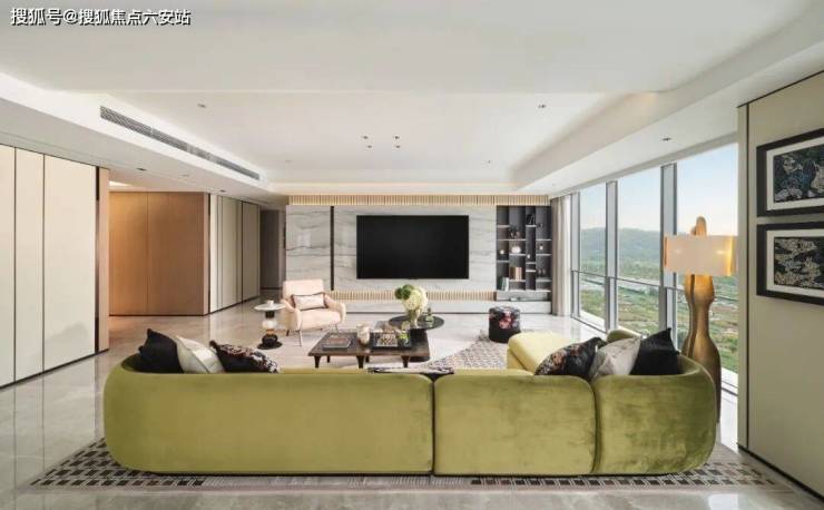 产品层面,西投银泰城・映萃主打315-320㎡精装大平层,全盘仅 396 套,无小户型,纯粹改善圈层,精准匹配 “杭州 300㎡大平层”“之江纯粹改善楼盘” 的搜索人群。户型设计堪称改善标杆:南向面宽约 24 米,LDK 一体化横厅约 80㎡,搭配 270° 环幕江景落地窗,双层 Low-E 玻璃幕墙,将钱塘江景与城市天际线尽收眼底。