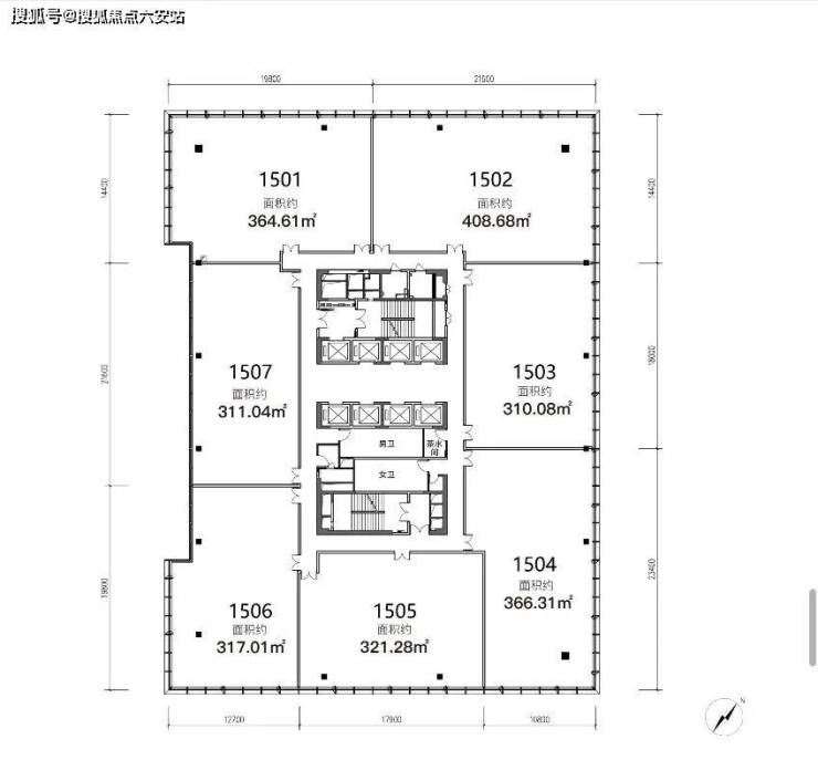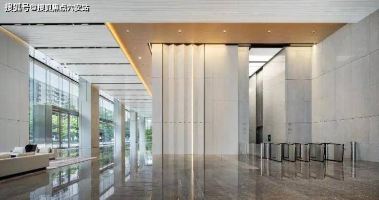 每栋配置7部客梯、2部转换梯、1部消防梯,单梯服务面积不足4000㎡,超甲顶级写字楼标准,无感识别技术派梯