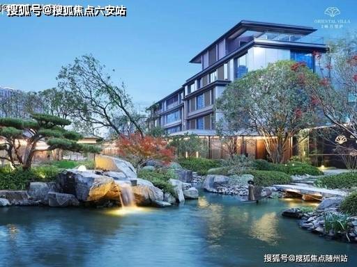 大师宋淑华设计,“月水” 主题,六重归家礼序、风雨连廊、月洞门、枯山水、下沉庭院,35% 高绿地率。