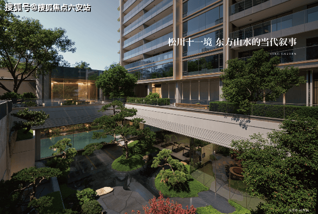 2. 园林景观:秉承“山水有相逢”核心理念,从北宋范宽《溪山行旅图》中汲取灵感,打造“松川九境”立体山水园林,引泉植松,搭配周边河流景观,营造静谧雅致的东方栖居氛围。
