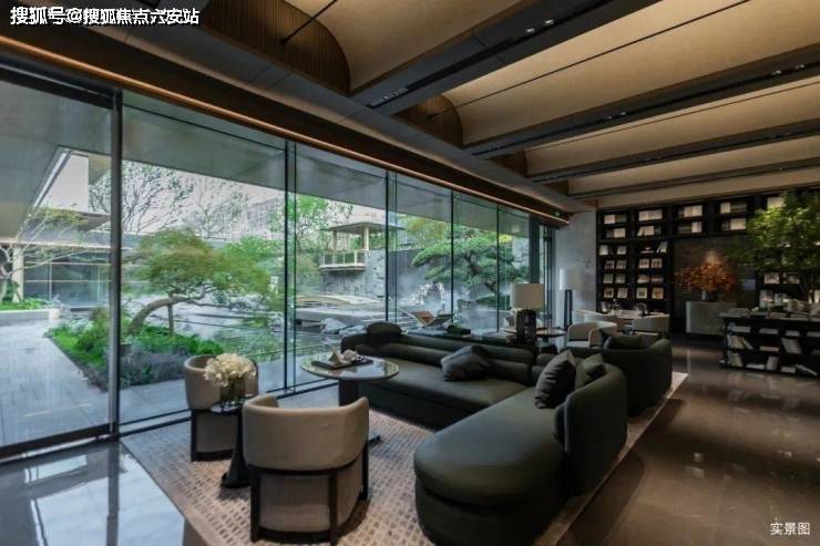 晨起时,薄雾如轻纱般掠过罗汉松的枝桠,在蓝金坡屋顶上留下露珠的印记;午后的阳光穿过巨幕玻璃,在灰蓝陶瓦上投下斑驳的光影;待到夜幕低垂,檐角的风铃与溪涧的潺潺声交织成曲,将宋人的"山居四时"化作触手可及的日常。