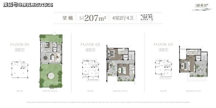 樾青岚户型空间设计,突破传统格局, 户户打造奢阔大花园,完美放大空间使用率 ,让生活尺度超乎想象; 以主力户型建筑面积约207㎡为例,平均约50%院房比 (不同房源,庭院面积大小不尽相同) ,并打造 约9米景观面 ,让 院子的尺度与客厅等比同宽 。丰富的院落组合,围合出归属感和领域感,内含亲情,外合邻里,满足院落生活的本真向往。