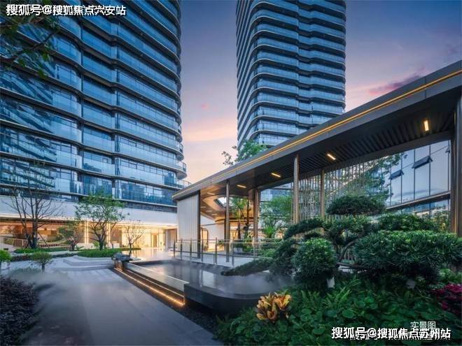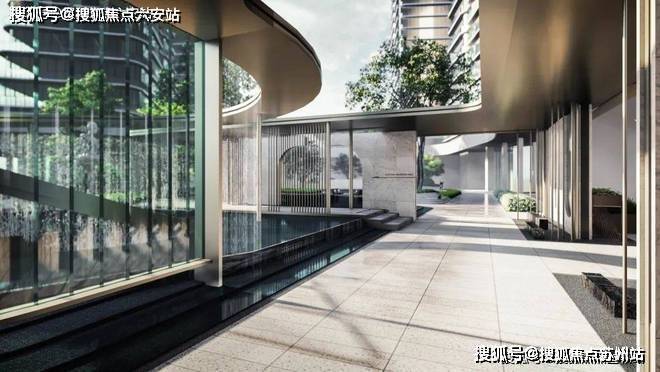 沿着风雨连廊穿过景观园区,不经意间遇见汀水会客厅,叠水石景、游鱼锦鲤,让人在游览中陷入片刻的微醺。就在这连廊中轴水月观景区,可直接观赏整个园区风景,整个景观设计汲取莫比乌斯环“∞”无限延伸的灵感,以“无尽之境”为设计理念,打破传统设计的“界限”,你可以沿着星月草坪、风雨连廊循环往复、移步换景,让风景生生不息。