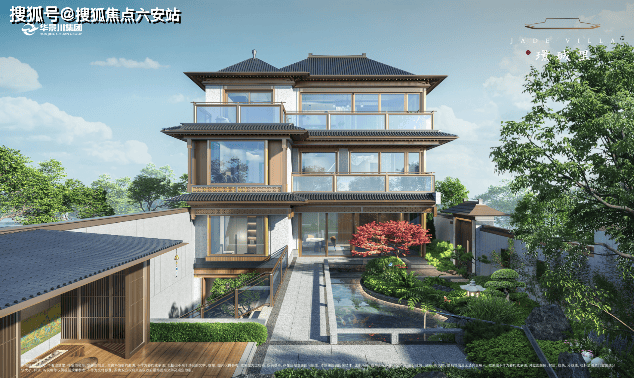 建筑风格:以唐代建筑为灵感,采用大坡屋顶、飞檐、斗拱等元素,外立面以真石材搭配香槟金铝板,辅以鎏金、墨灰与蔚蓝三色,彰显尊贵感。