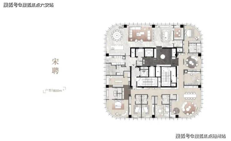 主力户型:410-430㎡精装大平层,总价2200-3000万;顶奢跃层820㎡整层一户,总价7000-8000万。