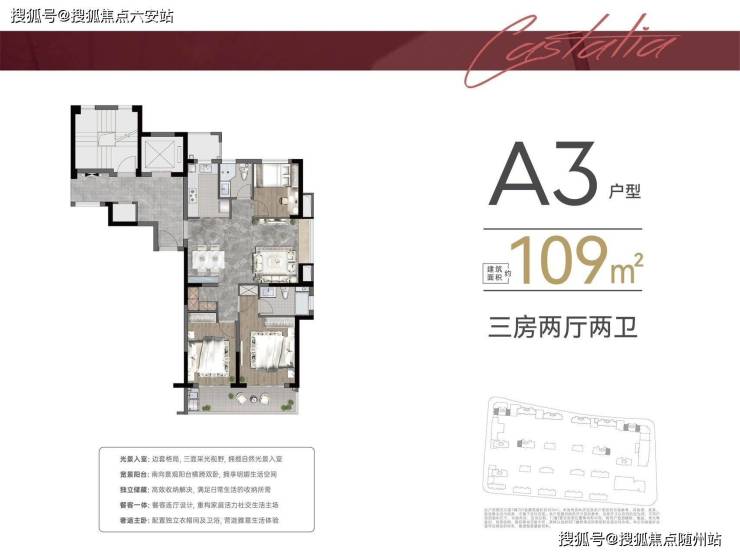 主推 109-135㎡全龄改善户型,亮点包括: