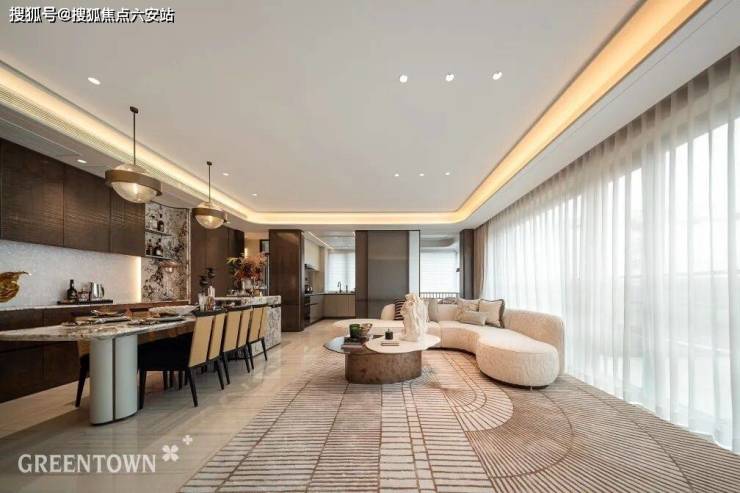 铝板与大面玻璃的结合不仅符合现代审美,还具备良好的耐候性和实用性,能够经受时间考验。项目在材质选择上极为考究,如发光石材背景墙、瑰丽酒店同款壁灯等细节,体现绿城对精工品质的坚持。