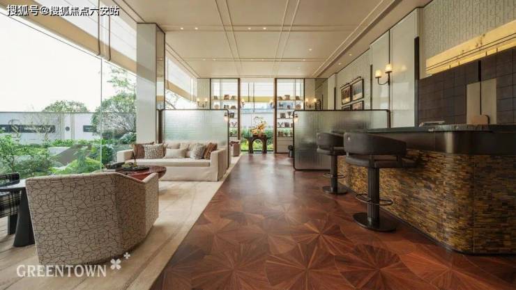 “闲庭叙”暖调光晕下,几何拼花地砖、皮革沙发与艺术装饰画辉映东方美学;“半盏闲”茶歇区落地窗框景成画,生活瑰丽悄然蔓延。