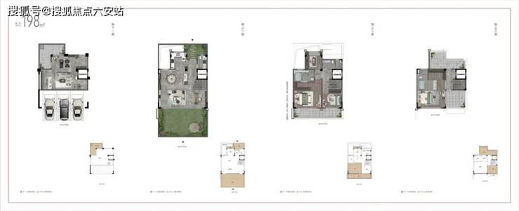 联排198、174平,地下室挑高5.4米,南北双入户花园,三层南北双露台