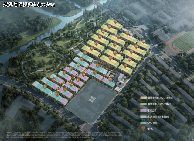整体布局以中央山水景观轴为骨架,将松石叠泉和山水林间两大景观要素贯穿全区。营造“一轴一带八景十巷”的多进式园林体验。第一策略是充分利用自然景观的优势,运用中国传统园林设计中的“借景”手法,将超山和基地西侧的城市公园风景引入居住区。