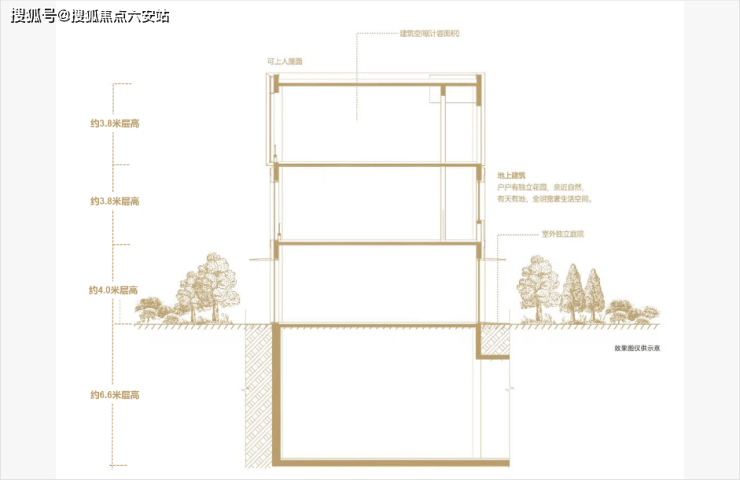 【层高】地上3.8-4m,地下室总高6.6m