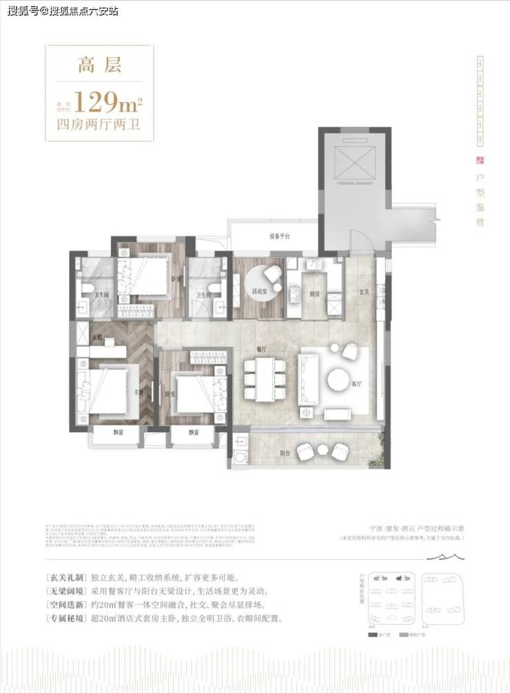 高层129户型:餐客厅与阳台无梁设计、超大餐客厅、动静分区、无暗间
