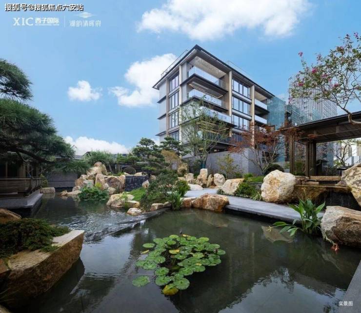 造园有法 园林设计· “一轴两苑八景山水花园九巷”,层层递进,·借东沙湖景,引水入园,叠山环水,构成江南水乡的居住意境。· 师法郭庄,独创“五进式”东方礼序空间。· 用心甄选素有“松之王”之称的珍品级黑松。· 巨峰飞瀑如银河倾泻,消弭外界喧嚣,归家心境豁然开朗。· 以中央水苑为心、连廊为轴,串联起一方赏月胜地。· 规划“两街九巷”形制,并独创约6.5m超宽街巷。