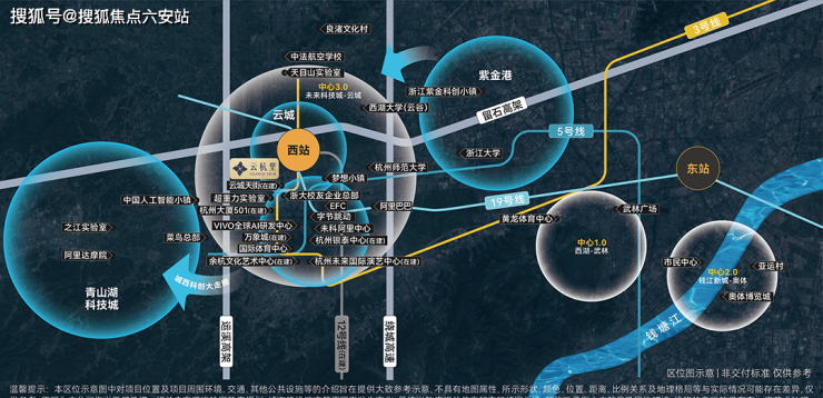 项目择址杭州第三中心—云城核芯,落位云城“华丽1平方公里”的中心点,坐拥西站枢纽TOD、云城天街、三地铁(3号线、12号线、19号线),揽一城繁华与磅礴风光。