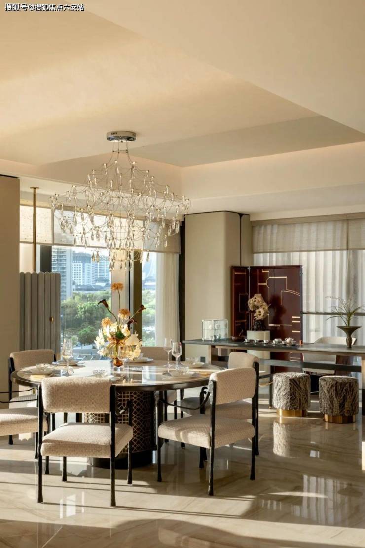 电梯门厅成为个性化表达空间。700方的整层格局,赋予设计师近乎美术馆级的自由挥洒空间,从恢弘阔绰的横厅到私密静谧的六大套房,空间叙事逻辑清晰流畅。