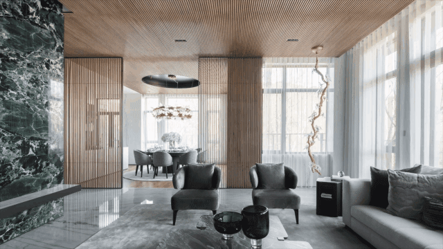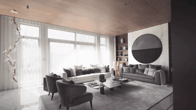 项目特别设计"四时庭院"系统——春赏樱、夏观荷、秋闻桂、冬品梅,通过植物配置让业主感知自然节律。地下室恒温酒窖与顶层星空露台形成垂直温差体验,将山居的时空维度拉伸至极致。