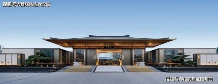 小区大门为歇山顶大门,形制媲美故宫乾清门,宽约53米(含景墙)、高近11米。鸱尾微翘,门两侧各置一块价值百万的蓝翡翠奢石,匹配高约2米(含基座)、重约600斤铜狮镇宅,搭配罗汉松迎客造型树,中式的尊贵感从归家开始就把情绪拉满。