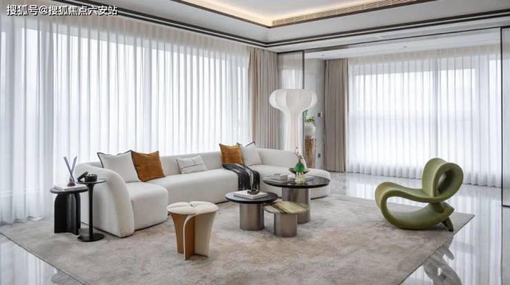 甚至连电梯厅,邱德光也从不循规蹈矩,将柔美的曲线运用到了公区,蛋壳般笼罩的米白色泛光让人回家很温暖。