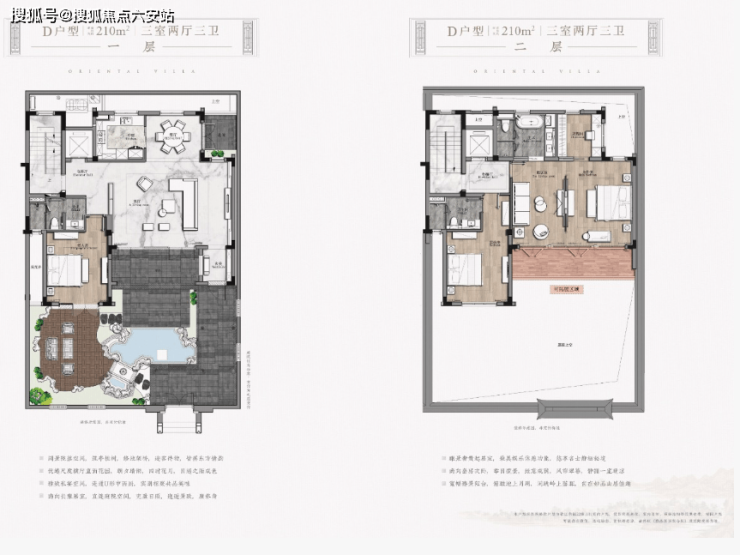 210㎡阔绰户型:庭院面积70-90㎡,地下室170-280㎡,总价800-850万。在170㎡户型基础上进一步升级,一层客厅采用挑高设计,搭配大尺度落地窗,尽显高端合院的大气;庭院面积更大,可打造假山流水、绿植景观与休闲茶座,享受私家庭院的静谧与惬意。二层双主卧套房设计,主卧配备超大衣帽间与奢华卫浴,露台面积进一步扩大,可俯瞰庭院全景与周边山景。地下室5.9米层高可打造更多功能空间,满足高端家庭的社交与收藏需求。