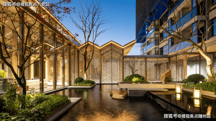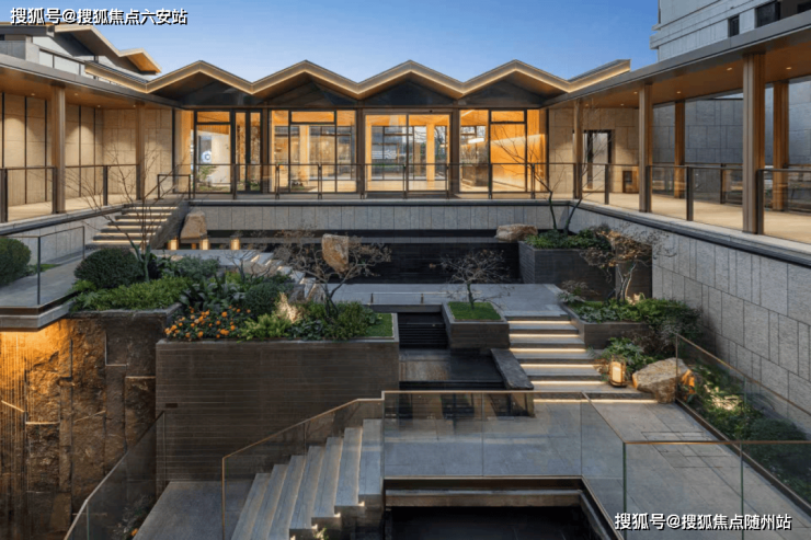 下沉庭院:规划配备精致的下沉式庭院,打造了立体、沉浸式的园林社交空间。