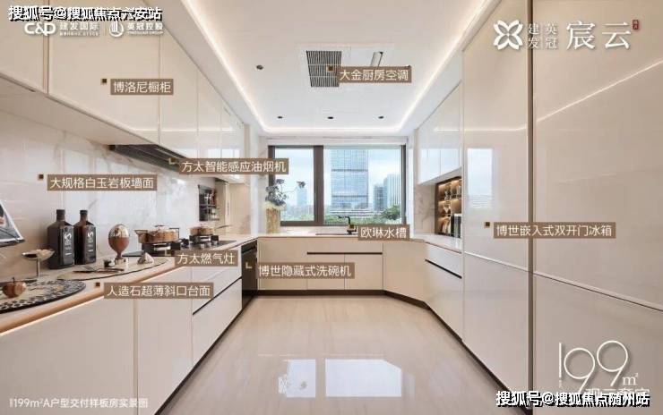 宸云的室内精装标配大金中央空调、霍尼韦尔新风、菲斯曼地暖三大件,严选博世冰箱、方太厨电、汉斯格雅卫浴、杜拉维特洁具等国际品牌。厨房配备博世洗碗机、蒸烤一体机,还增配了双开门冰箱,橱柜选用博洛尼品牌,细节处彰显品质。