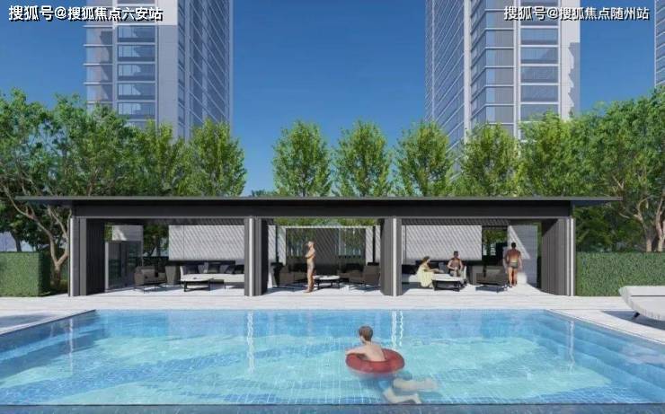 园区中,春风里配置了无边际天空之镜泳池,并且将泳池做成了成人和儿童相区隔的双池设计。