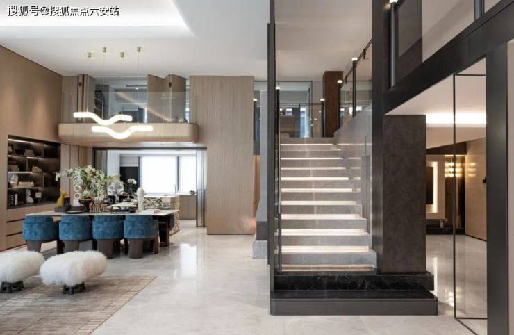 顶层:复式空间通过悬浮楼梯连接,4.8米挑高形成光的容器
