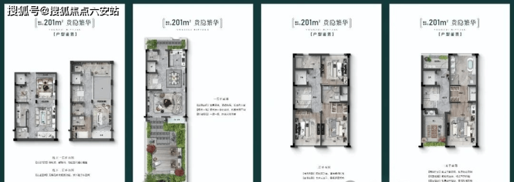 雍翠别院的整盘容积率仅约1.01,绿地率高达30%,是目前市场上难得的纯低密大盘,规划了45幢联排和5幢电梯洋房,排屋的主力户型面积为约201平方米和259平方米,洋房的户型面积约为119平方米和138平方米,目前已是准现房状态