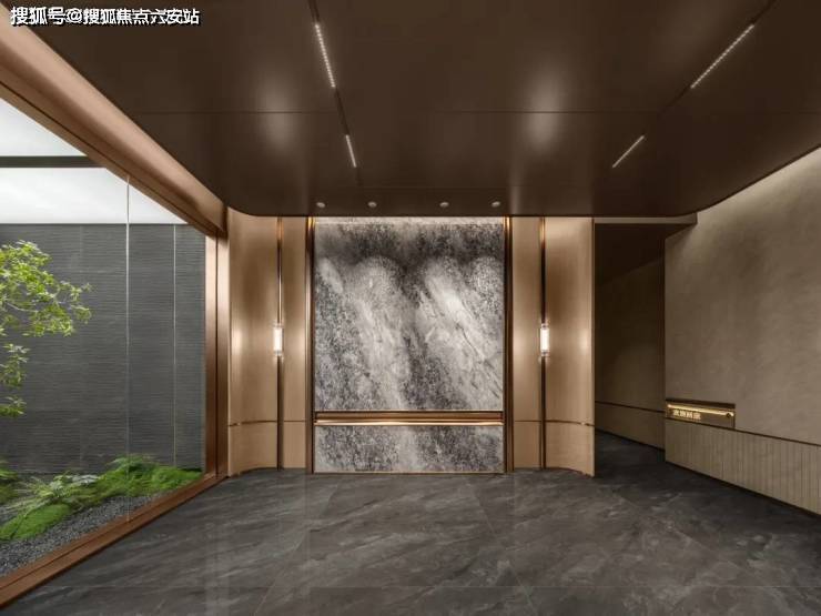 项目入口两侧油橄榄树姿态优雅,自带松弛感;归家序厅两侧有种植桂花树,隐喻“蟾宫折桂”的祝福;地面铺装芝麻黑花岗岩与福鼎黑花岗岩,不仅沉稳大气还有活泼灵动……生态封面与人文底蕴的完美结合,让宸岸新月府成为了一处真正的诗意栖居地。