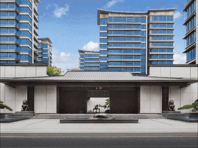 新中式立面典范杭州·建发·缦云,项目位于杭州老城区,邻京杭大运河。设计通过楼栋错动的方式,在场地内围合出多个公共花园。