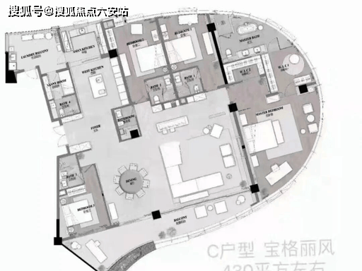 123 席纯大平层,430-450㎡奢阔尺度,圈层纯粹
