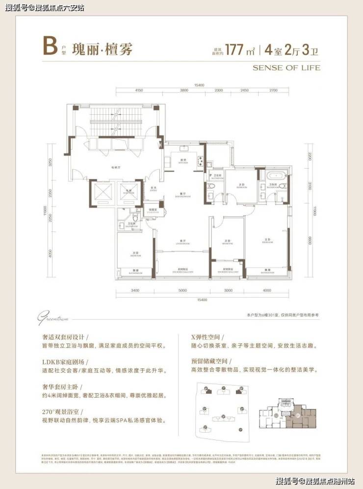 建面约177㎡户型,则是149升级版。约15.4米南向面宽+三卧室朝南,把空间改善写进每一方尺寸中。