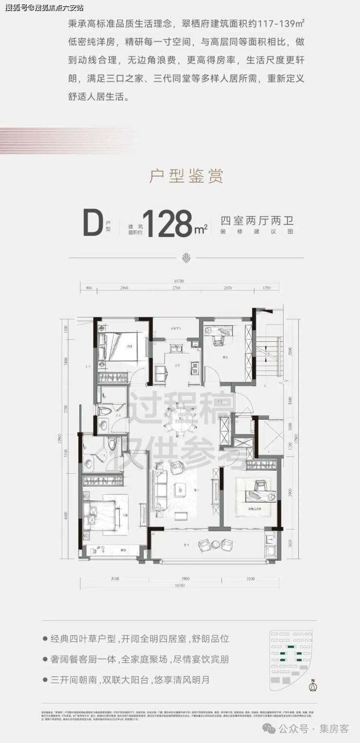 如果你的预算兼顾更大面积段的,建面约128方的四叶草户型和建面约139方的边套可重点关注,大面宽,动线流畅。