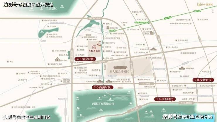 •正处城西大走廊的起始点紫金港板块,东南约1.5km即为浙大紫金港校区,直线距离建设中的地铁4号线莲池站仅约660m。