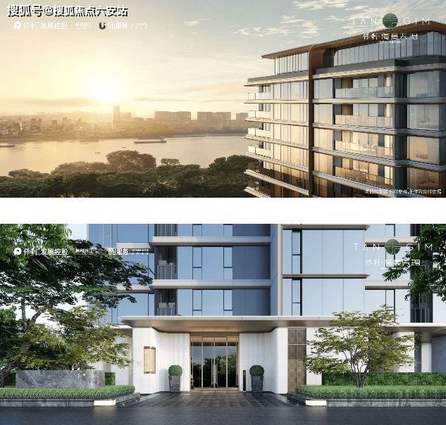 建筑外观设计上,保利海晏天珺引进了泰国曼谷安缦酒店的设计精髓,采用了弧形元素和连续横向线条的变化,勾勒出建筑的黄金比例,展现出高雅与豪华的气质。