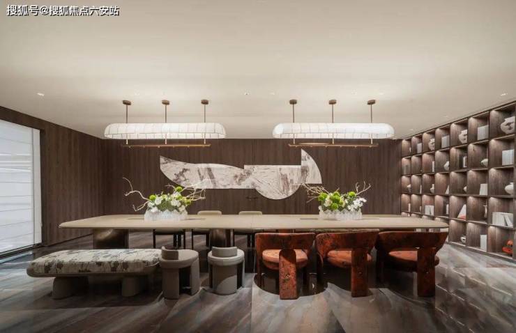 休闲区不规则形的长条座椅,犹如阳光把枝叶投射在墙上,树影摇曳。自然元素的设计,仿若置身于林间书屋,安置内心,与自己相处,与所爱的人或事相处。岁月静好,现世安稳便是人间美好。