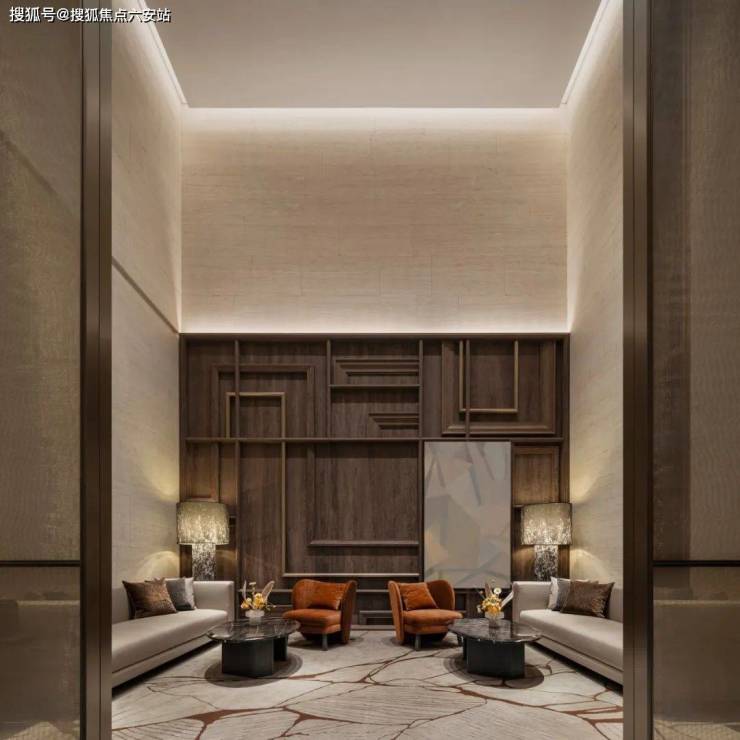 社区大堂采用黑色大理石地面,配以高级真皮座椅和半开放式休息区,营造出奢华感。带有中式元素的玻璃墙将休息区环抱于中,半开放式的结构增添了独特的东方韵味,让空间更具吸引力。细节处处体现品质,人们在此感受到舒适与优雅并存的氛围。
