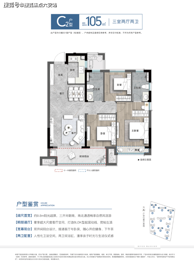 超高窗墙比+LOW-E中空玻璃,视野开阔,保暖隔音