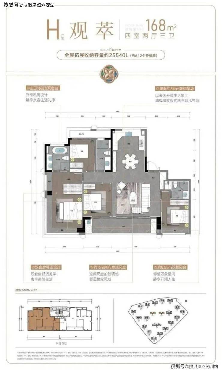 打破常规尺度,用约125方的面积,营造出约200方的奢华感。四开间朝南,超13米的采光面,配以双联阳台,不仅采光充足,坐在客厅休憩,也能感受到清风徐徐的爽感。