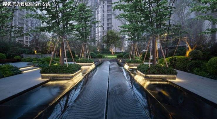 项目采用玻璃幕墙+香槟金铝板立面,顶部退台设计形成阶梯式天际线。部分楼栋间距近百米,打造“阳光穿堂过、江风拂面来”的奢适体验。约4.1万㎡园林以“一轴三园七景”布局,融合ANDAZ酒店风格,设蓝宝石泳池、下沉式私宴庭院及700米滨江慢跑道,实现“推窗瞰江、下楼即园”的微度假生活。
