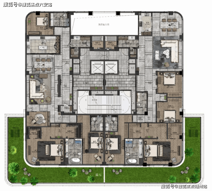 二楼带景观露台,顶楼空间则奢侈到夸张,490m²五房,一层一户送三个露台,比传统的300m²地上三层地下二层的别墅还舒服。