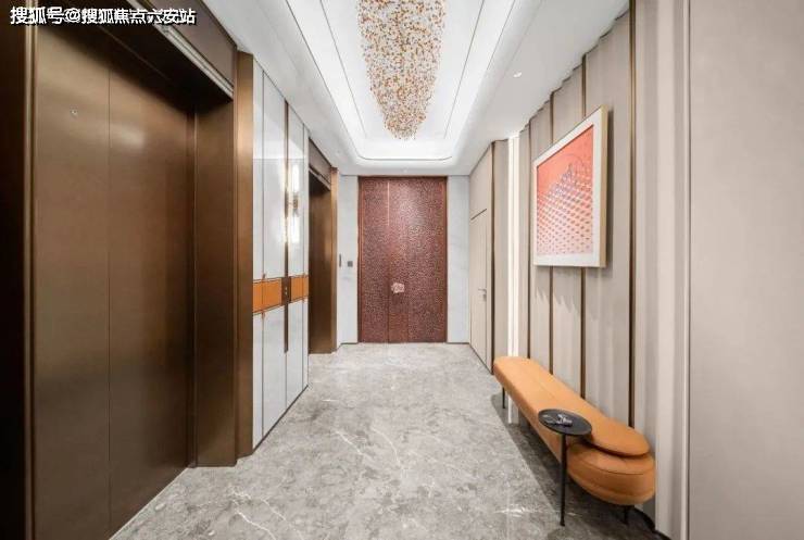 奢适的礼制,贯穿往来的每一步。 朗阔的电梯轿厢, 人脸+掌纹双重识别科技,实现零接触归仪;两梯一户的设计,归来途中,摒弃旁人的喧哗,让尊贵感、奢适感拉满,同时打造出专属感的入户门庭礼序空间维度,从入户开始,便奢享自在愉悦。