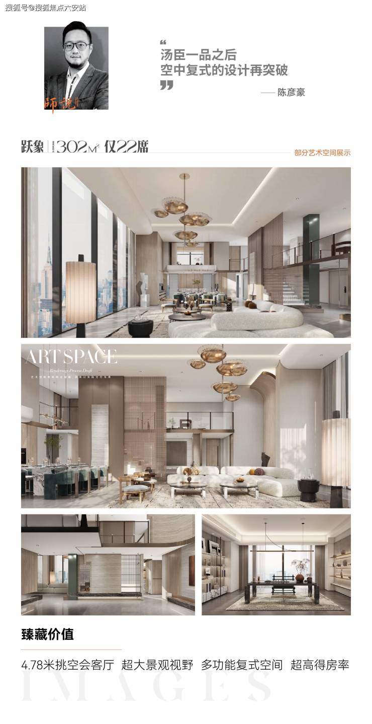 4.8米挑高复式,赠送80㎡星空露台,下层会客、上层居住。