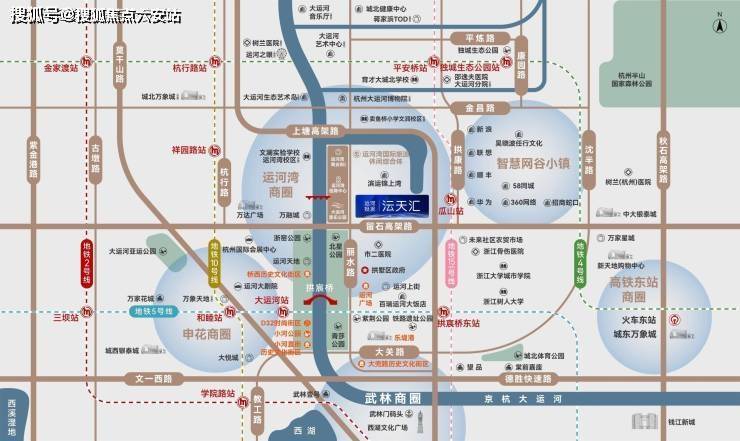 战略区位 踞守运河湾CBD南大门,无缝链接桥西、申花高端住区,执掌城北发展动脉。双高架(留石/上塘)+水上巴士+地铁5/15号线(规划)立体路网,30分钟速达杭州东站、萧山机场。