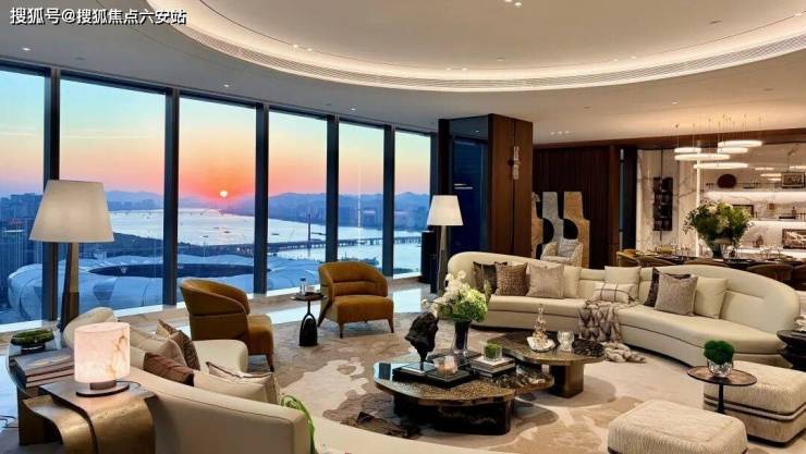 西湖起伏的山峦,钱塘江水在窗下流淌成一条银链,当落日熔金浸染江面,与对岸的日月同辉映照入室内,汇成一片鎏金。